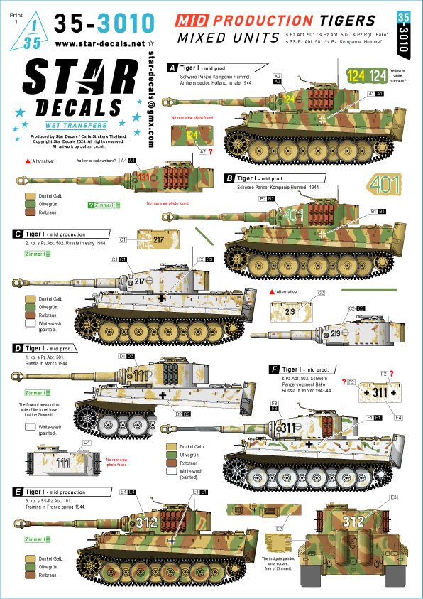 Mid Production Tigers. Mixed units. s.Pz.Abt. 501, s.Pz.Abt. 502, s.Pz.Kp Hummel, s.Pz.Reg. Bäke, s.SS-Pz.Abt. 501,